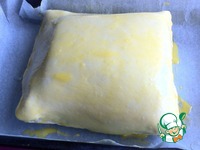 Тесто хорошенько защипываем конвертом. Выкладываем пирог на противень швом вниз. Смазываем желтком. Запекаем при 220 градусах 25-35 минут. |