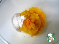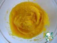 Отмерить 200 г тыквенного пюре, перемешать с сахарной пудрой и апельсиновой цедрой. |