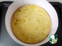 Собираем торт. Бисквит разрезать на три части. |
