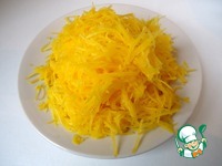 Пока желе застывает, приготовить декор-паутинку из тыквы. Тыкву натереть на мелкой терке. |