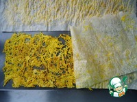 Противень выстелить пекарской бумагой. Тыквенную стружку распределить по бумаге, присыпать сахаром и корицей. Сушить при 100*С ~1,5 часа. |