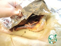 Утиное мясо достаем из духовки и накрываем фольгой. Утиный жир оставляем, он нам еще пригодится. |