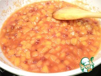 Увариваем соус вдвое. Он немного загустевает, кусочки манго карамелизируются и становится прозрачными. |