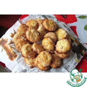 Каждый кругляшок искупать в белке и обмакнуть с двух сторон в сахарную пудру. |