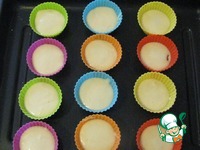 У меня формы силиконовые и потому их не смазываю ни чем. наливаю по 0,5 ст. л теста в формочки. |