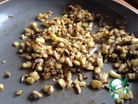 Нарезаем маленькими кубиками: один небольшой баклажан, 2 небольших шампиньона, половину небольшой луковицы. |
