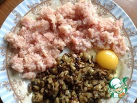 Смешиваем фарш, небольшое яйцо и поджаренные овощи. У меня фарш - смесь индейки и постной свинины. Фарш может быть любым, по вашему желанию. |