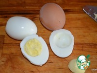 2 яйца отвариваем. Отделяем желтки от белков. Белки рубим и добавляем к печени и луку. Желтки натираем на крупной терке. |