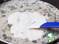 6. Убавить огонь, добавить белый соус и тщательно размешать. Прогреть, но не кипятить. |