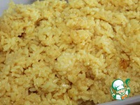 Рис отвариваем по привычному для вас рецепту. Я готовлю его в мультиварке с добавлением сливочного масла, куркумы и соли. |