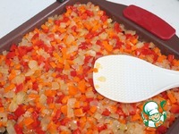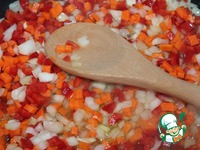 Лук, морковь и перец обжариваем на небольшом количестве растительного масла. |