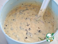 3) Получившуюся смесь вводим в тесто и перемешиваем лопаткой. |