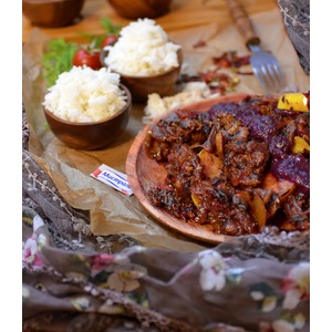 Описание: Нежное и вкусное мясо получается, если его протушить с соусом ткемали. Грибы и кусочки груши разнообразят вкусовую гамму. Гарниром выступит рис Индика от Мистраль.