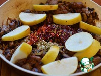 Грушу нарезать крупными кусками и добавить к мясу. Тушить в соусе ткемали ещё несколько минут. Посолить по вкусу. |