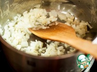 Нарежьте лук и чеснок мелким кубиком, обжарьте в горячей сковороде или кастрюле (кому как удобно) на оливковом масле в течении 2-3 минут. |