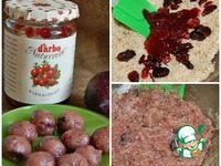Для начинки сливы разрезать пополам, вынуть косточку. Влить внутрь каждой сливы коньяк, уложить в миску разрезом вверх, немного присыпать сахаром. Закрыть пленкой, поставить в холодильник на 12 ч. |