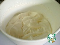 Теперь готовим крем. Взбиваем 150 г сливок и 200 г сливочного сыра с сахаром. Как вариант можно использовать и творожный сыр, лично мне так тоже нравится. |