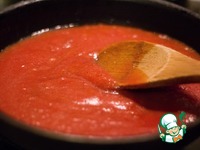 Добавить к луку столовую ложку пасты из вяленых томатов (вяленые томаты измельчить блендером). Перемешать. |