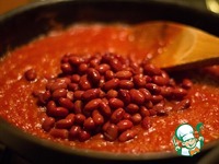 Слить жидкость из банки с фасолью, фасоль промыть под холодной проточной водой, добавить к соусу, готовить 2 минуты. |
