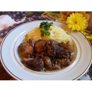 Через три часа гусь получается нежнейший... Мясо тает во рту, невозможно оторваться... Можно кушать прямо так... |