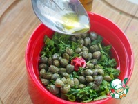 Далее поместить петрушку в чашу блендера и добавить каперсы. |