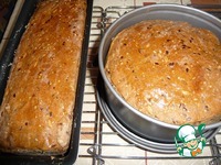 Хлеб вынуть из форм и оставить остывать на пекарской бумаге на решетке, не накрывать. Вес прямоугольного хлеба 574г, круглого 588г |