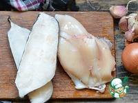 Для соуса я взяла два куска рыбы (зубатка) и две тушки кальмара. |