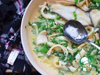 5. Кальмары и рыба пустят сок. Протушить их в этом соке. Если у вас "сухая" рыба, то добавьте полстакана воды. Добавить шпинат. |