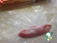Укладываем филе и сворачиваем очень плотно, не оставляя воздушных пузырьков. |