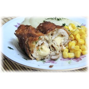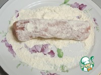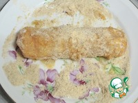 Свернуть грудку конвертиком и заколоть зубочистками (если это необходимо для сохранения формы). Обвалять в муке, затем обмакнуть во взбитое яйцо ( я забыла это сфотографировать). |