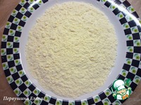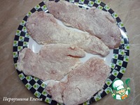 хорошенько стряхнув лишнюю (на мясе должен остаться только очень тонкий слой муки). |
