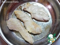 Разогреть сливочное масло в сковороде и обжарить немного филе. Мясо не должно сильно подрумяниваться! |