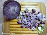 Нарезать кубиками лук. Обжарить в сковороде на том же масле, что и филе, в течение 1-2 минут. |