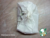 Выложить полученные "мешочки" на противень и запечь в разогретой до 200° духовке, пока пергамент не начнет подгорать. У меня на это ушло около 15-20 минут. |