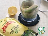 1. Авокадо почистить, удалить косточку, положить в чашу блендера, добавить лимонный сок, черный перец, измельчить в пюре. Затем добавить майонез, перемешать. |