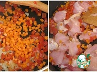 Нарезать небольшими кубиками лук, болгарский перец. |