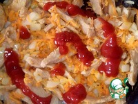 Добавляем кетчуп или томатную пасту. Перемешиваем. |