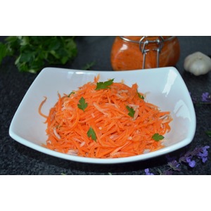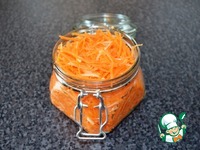Я стерилизую только банки и крышки, заливаю морковь кипящем маринадом, туго закрываю, переворачиваю, жду пока хорошо остынет и в холодильник! Хранится примерно пару недель, дольше не пробовала, уходит всегда быстро! |