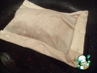 Завернуть мясо в конвертик из бумаги для выпечки, закрепляя края степлером. Обжарить на растительном масле до готовности. За счет конвертика сок из грудки никуда не вытечет и она будет сочной. |
