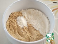 8) Смешиваем пшеничную, кунжутную муку и разрыхлитель. |