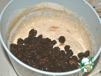 10) Вишня у меня была сушеной, я ее замочила на 4 часа, но лучше бы на ночь. Сюда подойдет любая свежая или мороженая ягода. Вишню добавляем в тесто, перемешиваем. |