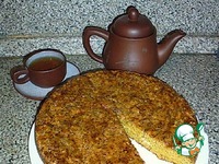 Вынув из духовки, даем немного остыть, затем выкладываем пирог на блюдо и смазываем жидким вареньем (сиропом). Я смазывала домашним виноградным желе. |
