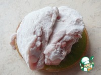Насыпьте муку в неглубокое блюдо, посолите, поперчите. Обваляйте бедрышки в панировке, стряхните излишки муки. В принципе, не важно, какие части курицы использовать. |
