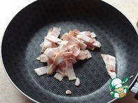 Тем временем на сковороду положите нарезанный бекон и жарьте пару минут, добавьте нарезанные грибы и готовьте, помешивая, еще несколько минут, |
