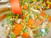 Жарим 2 минуты, потом добавляем соевый соус, соль и на медленном огне, обжариваем минут 8. |