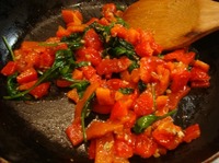 И нарезанный на кусочки печеный перец. Подержать на огне пару минут. |