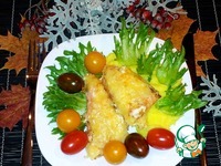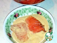 Кусочки лосося обваляла с двух сторон в панировочных сухарях. |