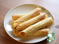 12. Вафли порезать наискось на две-три части, выложить на тарелку. Приятного аппетита. Готовьте с любовью и удовольствием. |
