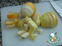 Нарезаем фрукты - кубиками. Апельсин с кожурой, из яблока удалить сердцевину, нарезать вместе с кожицей. Тонким ножом снять цедру с одного небольшого лимона. (Сам лимон нам нужен не будет!) |