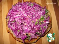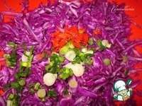 Краснокочанную капусту тонко нашинковать, немного посолить и помять руками. Добавить мелко нарезанный зеленый лук и перец чили (без семян). |
